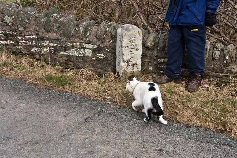 Dunnerdale, marked by a stone, seen here with an inquisitive cat.