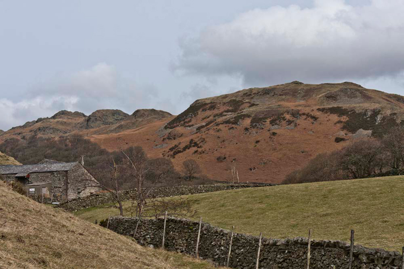 distant cairned top above Scrithwaite Farm being Raven Crag. We