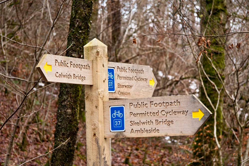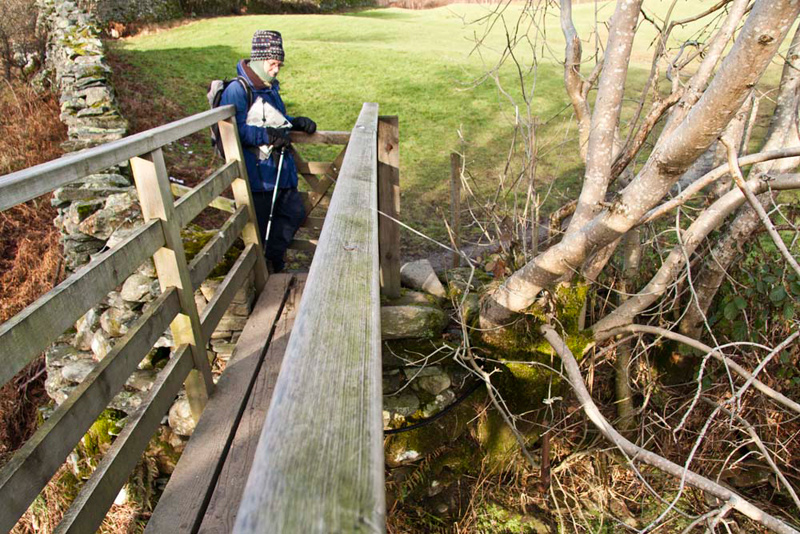 the footbridge over the Colwith Beck. Access to the footbridge