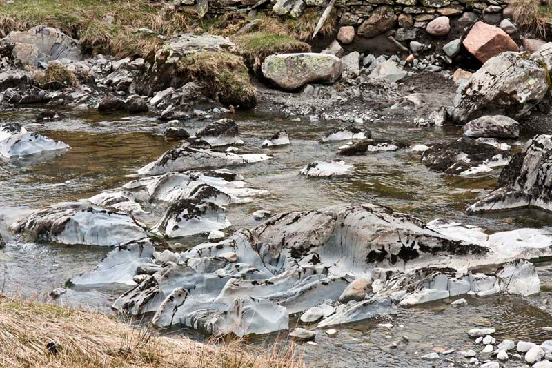 As we strolled along the track, Grizzly said, "look how the rock had been worn smooth by the water."