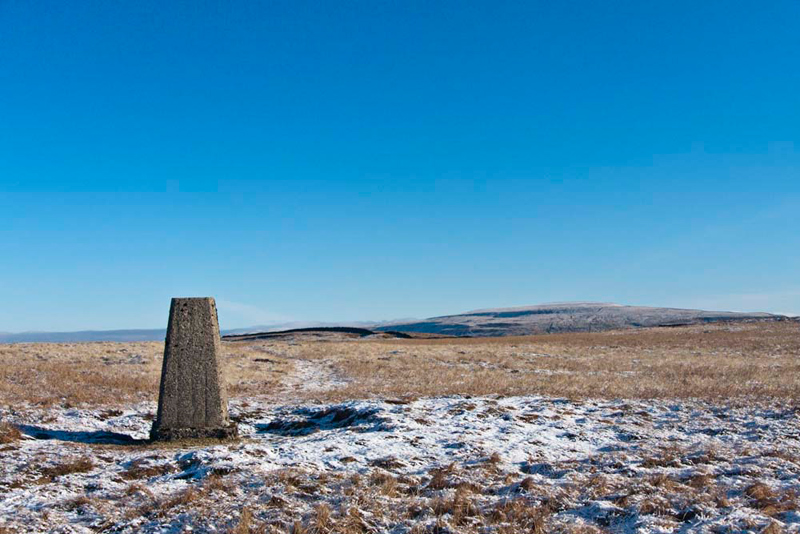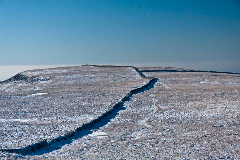 The snowy track can be seen leading us to the stile in the cross wall from where it was onwards in the same direction to reach the trig