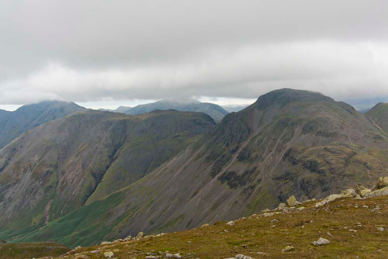 Returning to Esk Hause we had more superb views. "That's Kirk Fell, Great Gable and to the left of them Pillar its summit just in cloud", pointed Allen.