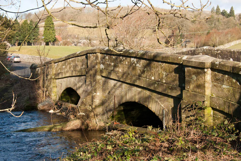 Grizzly said, "the bridge probably dates from the 18th century and was widened on the downstream side in the 19th century. The arches are separated by triangular cutwaters. The parapet has a stringcourse base with central and flanking pilasters. It is Grade 11 listed."