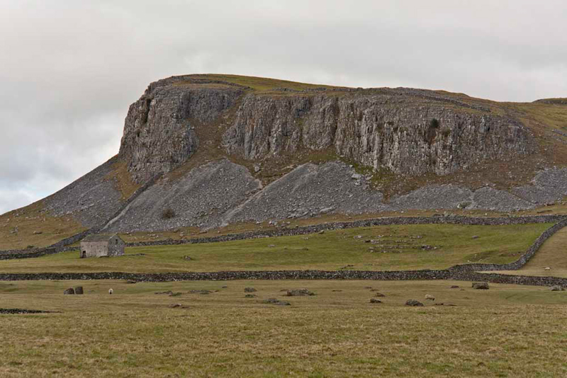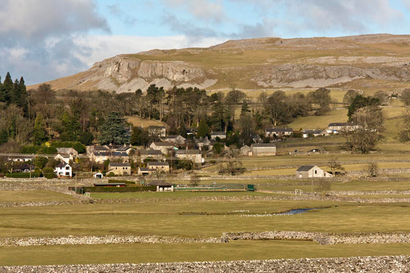 hamlet of Wharfe, bathed in sunshine, while Ingleborough darkly