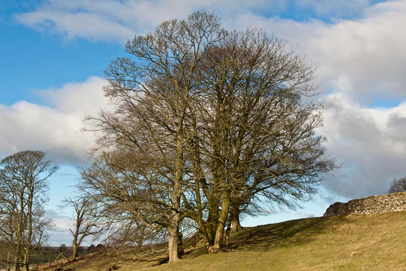 More stiles followed, the path cresting a rise and passing behind this group to trees. "Another nice shot for the story", said Grizzly.
