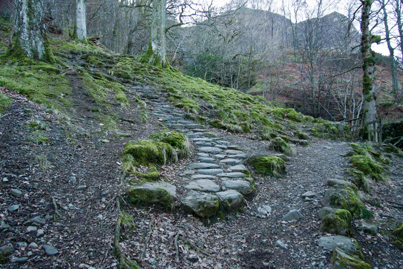 Above Ashness Gill the descent steepened the path rough and rocky. "Not good for your poor knees, Dad", said Allen sympathetically.