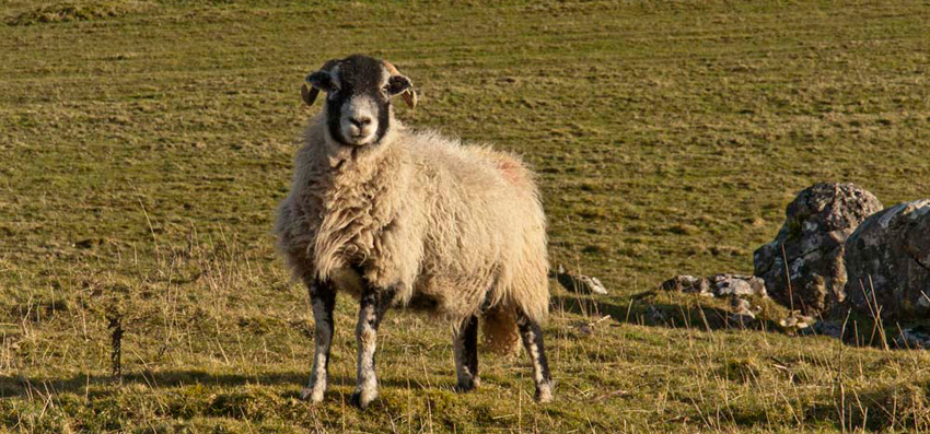 When the walk was originally published there was no access to the land immediately opposite, but since the rights of way act, this is now access land with a stile and gate, so at the farmers wife's suggestion we went this way. Just beyond the fence more sheep of his flock, had come down and waited impatiently, baaing noisily, for their turn to be fed.