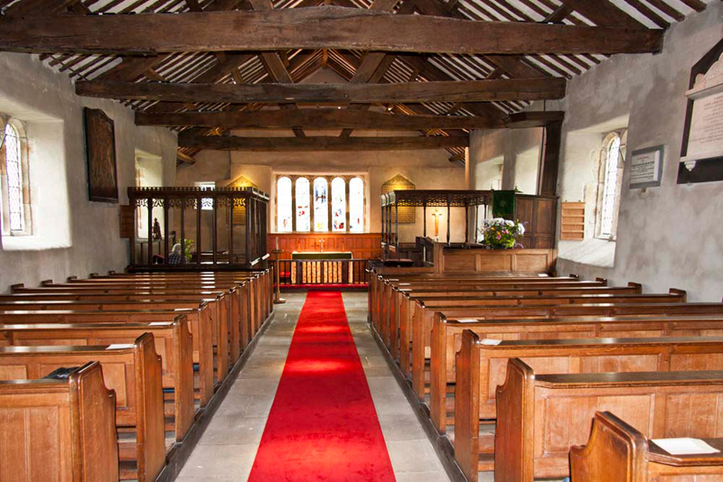 Grizzly whispered, "this boxed pew known as the Cowmire Pew, is thought to have been constructed from the chancel screen in 1571. The boxed pew opposite on the south side dates from the 17th century. In front of this, partly hidden by the flowers, is the three decker pulpit, a rarity dating from 1698. The lower deck is where the clerk sat, the middle was for the reader and the top was where the sermon was, and still is, preached."