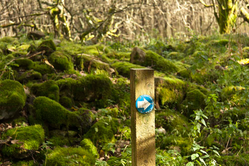 There hopes were dashed however, as soon, at a junction, where the forest road dropped down left, the blue arrow on the waymark pointed right. The path immediately crossed a footbridge, and then continued rough and rocky, as it undulated through the woodland. "Hey ho", laughed Tetley.