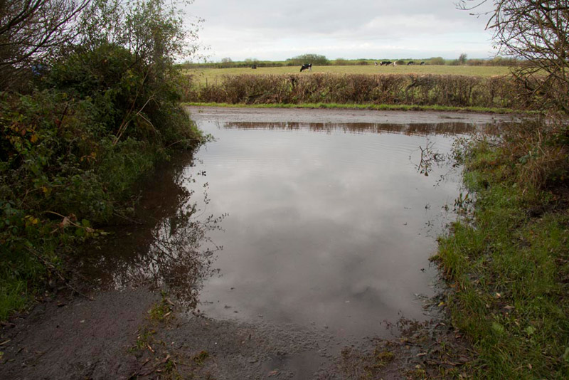 Dad took a few tentative steps forward, but the water was clear enough to see that the depth was over the top of his boots. The best solution, despite the awkward vegetation, was to edge along the left side, as you look at the picture above, taken after the successful negotiation, with thankfully for Dad dry feet. Beyond the path was muddy, but flood free.