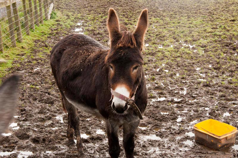 The last section into Allithwaite, was through some farm buildings, where we saw this donkey. We felt rather sorry for him having to stand in the mud.