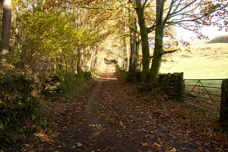 Although surfaced it was strewn with leaves, that had been shed by the trees lining it.