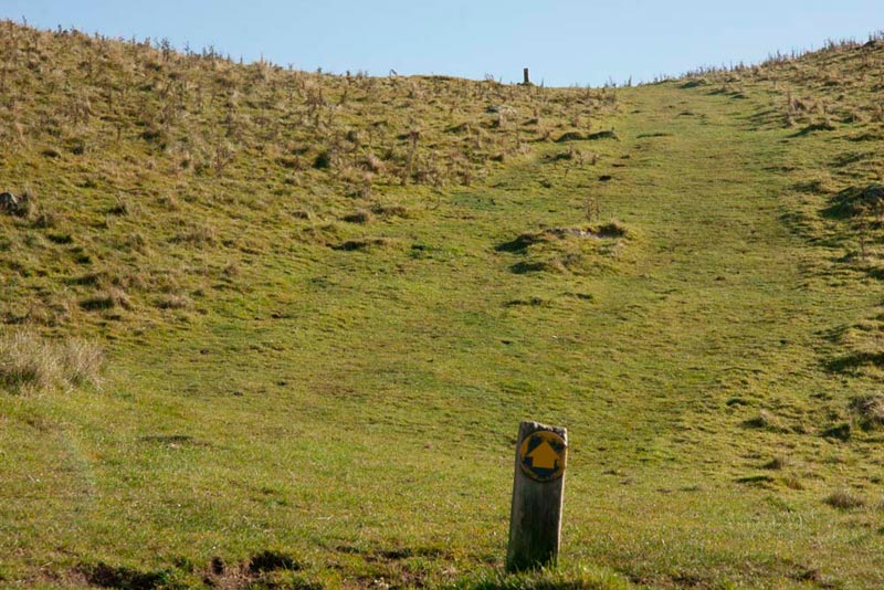 The path a clear grassy swathe climbed up steadily, and there was no risk of getting lost as more bear sized waymarks have been provided.