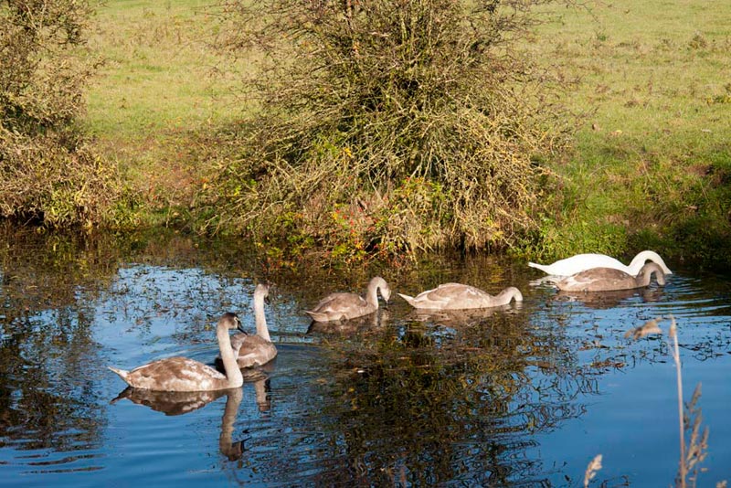 Strolling on Grizzly, called out, "look there's a family of swans. The cygnets are still at the 'ugly duckling' stage."