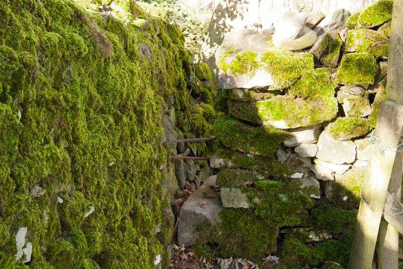 Keeping by the wall to the left the large field was crossed. Straight at first the boundary wall then turned right and then left to a cross wall, where Dad had to squeeze through the narrow stile near the building of Lorrimer Yeat.