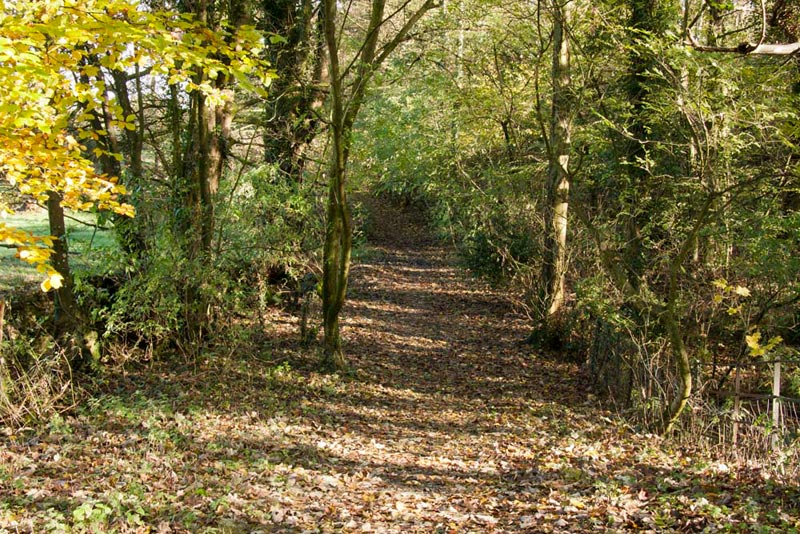 The bridleway, a wide path led through pretty woodland, leaf strewn at this time of year.