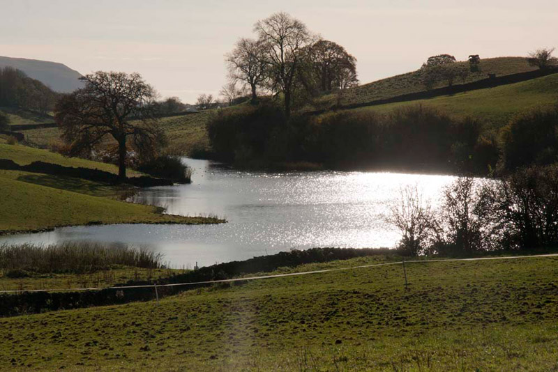 This was a clear path, with away to the right a small tarn, the bright sunlight reflecting off the water.