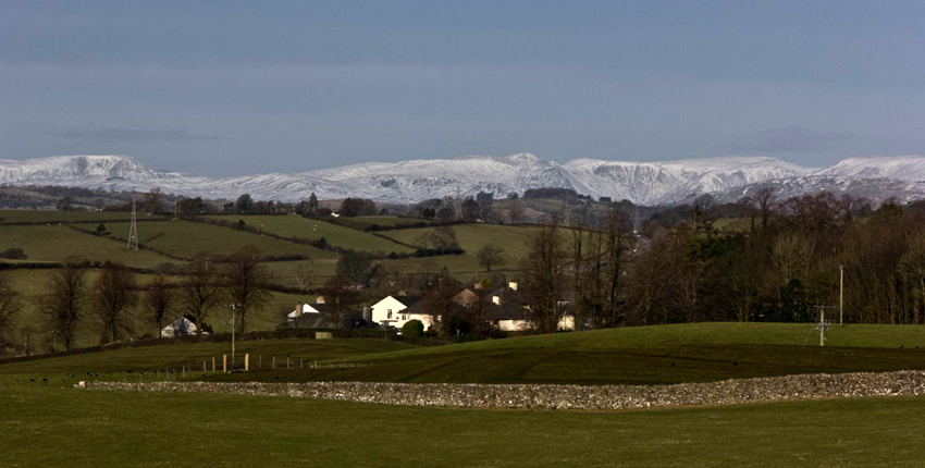 High on the hill to the left stands the pretty Preston Patrick Church.