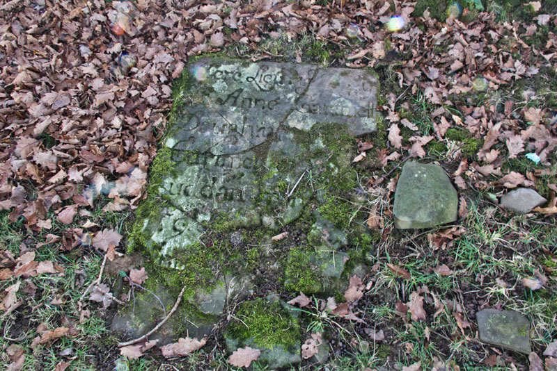On the day with Uncle Eric, when the shot above was taken, we went to explore the burial ground. All the graves are covered by grass, with the exception of this one. It marks the burial place of Anne Garnett and although not entirely clear is looks like she died in the 1790s. Next to it was half of another gravestone with two dates from the late 18th and early 19th centuries.