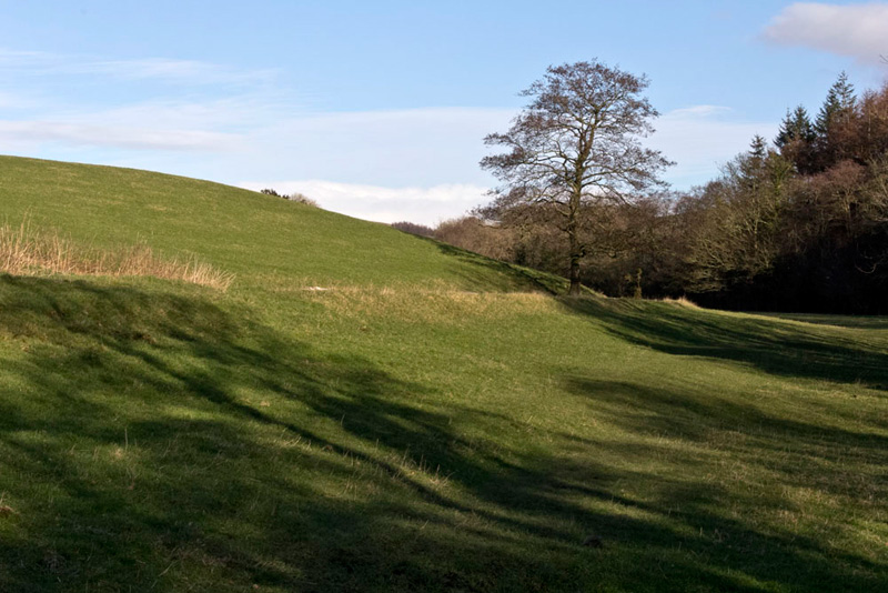 As we walked through one of the fields on the day with Uncle Eric he pointed, saying, "that low embankment running past the prominent tree looks like it may well have carried part of the tramway."