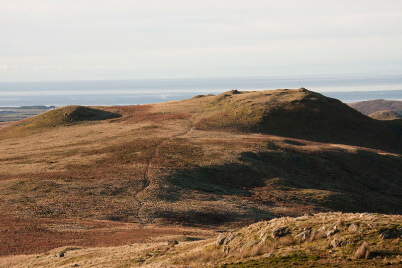 Seat How the last and lowest summit dominates. Distantly behind to the left is Woodend Height that via Yoadcastle (not in view), will be reached from White Pike far distant to the right.