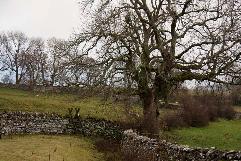 This took us past a line of three trees, their almost completely leafless branches stark against the winter sky.