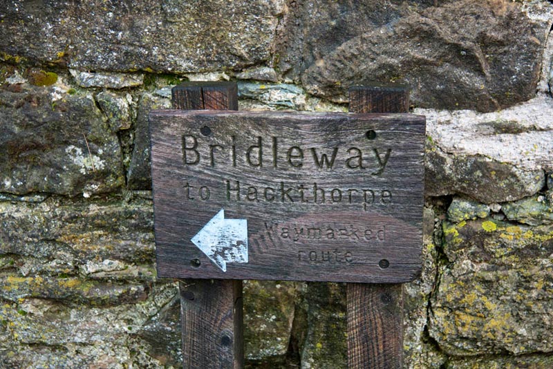 The farmer's wife had just arrived in her car, and seeing our dilemma, asked if she could help. Dad explained and she pointed out the bridleway sign hidden behind a large barn, when descending from the scar.
