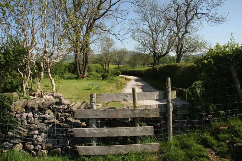 Then nearing the end, he went on, "now we want to follow that path through the gate to the right. We keep on this crossing a wide track, and then at the road to keep ahead to the house called Blaithwaite."