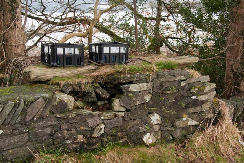 The track bed continued straight ahead, on land that is now private. The path meandered by the river and eventually we came to the A590 at Rusland Pool. Here we crossed carefully and then continued on by the Rusland Pool to Causeway Bridge. In the days before milk was collected from farms by tanker, farmers would put the milk in large metal churns that were stood by the road on milk stands for collection. This one was being used once again, but in a more modern manner.