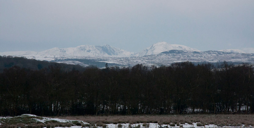 Grizzly then called out, "you can see some of the mountains from here too. To the far left is Walna Scar with the shallow dip being the Walna Scar Road. Then Brown Pike, Buck Pike & Dow Crag falling steeply to Goats Hause and then rising to Coniston Old Man, with Brim Fell to it's right. Finally on the far right just peeping over is the upper part of Wetherlam. The upland area in the foreground is the Blawith Fells the dark rise below Coniston Old Man being Blawith Knott (814ft) with Tottlebank Height (775ft) to the right."