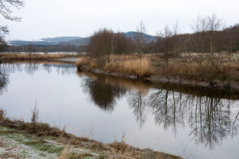 Eventually the route left the river, coming to a road, but not before Dad took this further shot with nice reflections.