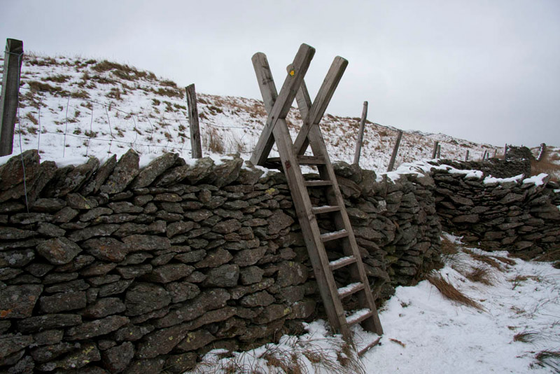 This brought us to a gate, and on the left a tall ladderstile over the wall, which we climbed.