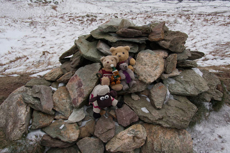 There had been no one on the main summit, but here there were quite a few other walkers, having climbed the main path from Ambleside, down which was our route. A family noticed us in the rucksack, and Dad told them our names and explained briefly about our adventures.