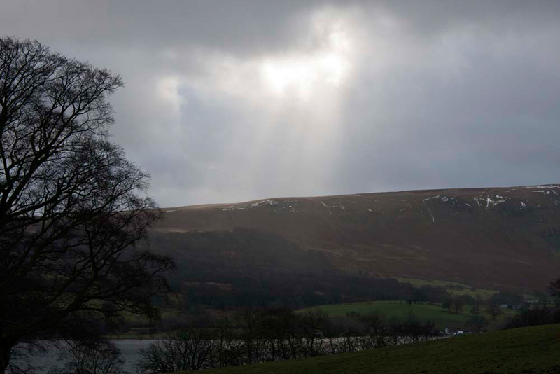 And also Dad captured this of the rays from a brief appearance of the sun over the fells to the east of the lake. More than once today we were to be glad not to be on those fells, as they were subjected to periods of heavy rain, that thankfully passed us by.