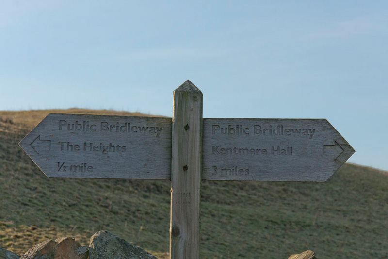 Dad was soon ready and we hopped into the rucksack and got settled. Our way from the junction was right along the bridleway in the direction the car was facing. As can be seen from the sign, it eventually leads to Kentmere Hall.