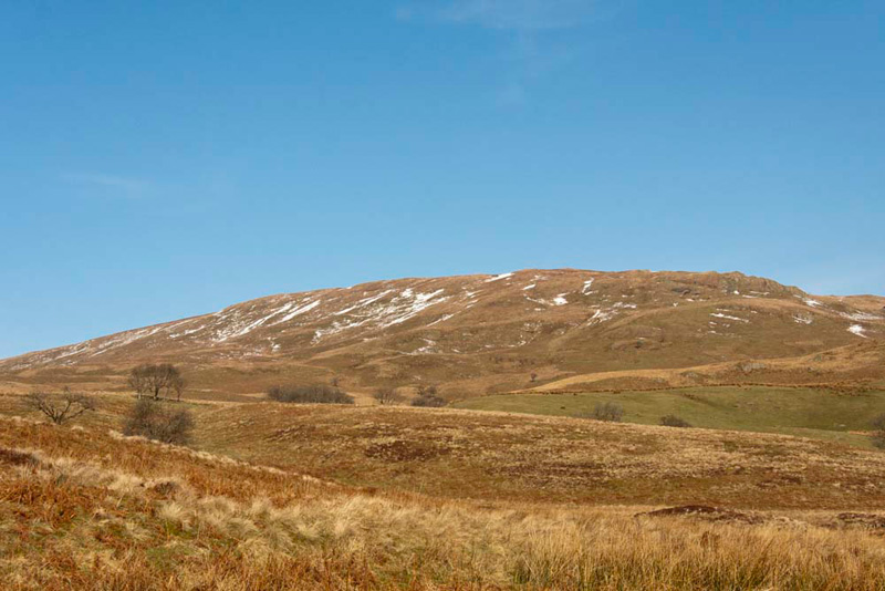 Its course can be clearly seen rounding the slope with the two small trees, to then traverse right under the shoulder of Long Crag in the centre.