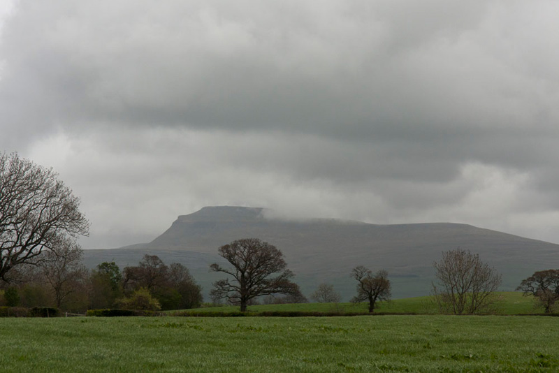 Looking over the hedge, Allen said, "that's Ingleborough we can see, its summit plateau being partly obscured by the lowering sky."