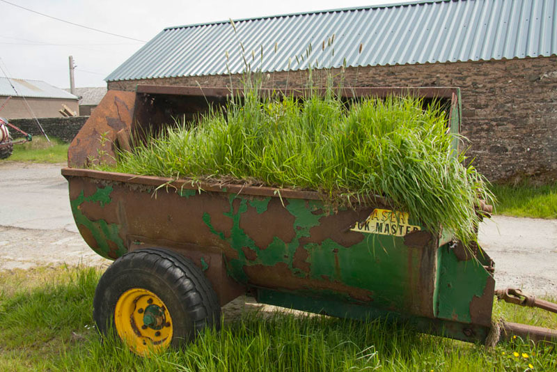"Look at that old muck spreader", laughed Grizzly. "No longer in use, but any fertiliser that was inside has made sure the grass has grown."
