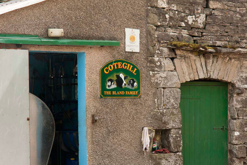Rounding the corner and passing the farm buildings, Tetley called out, "there is the sign for the owners of Cotegill Farm."