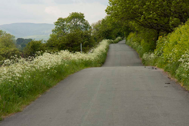 As you can see we had dawdled on this short section, but really it was too pretty to rush. Onwards now the path soon swung sharp right and climbed steeply and shortly to the road at Kelleth, where we turned left. This was the original road along the valley, prior to the new one being built on the former railway, and was lined with wildflowers in full bloom.