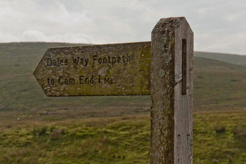 This indeed is now the route, over the bridge and through the gate in the wall, then going left. Shortly a multi-armed signpost was reached, and we initially took the path signed to Cam End, as it was a good way up the slope.