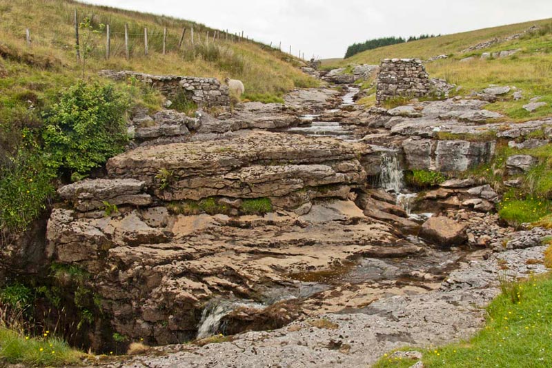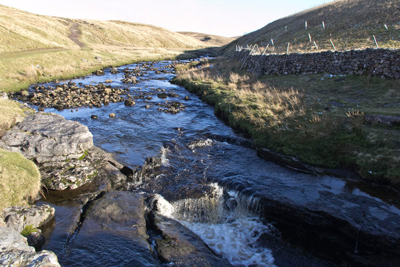 At the end, it was over a stile and through a small field and then to open fell, going left to pick up a track that led down to a ford over the infant River Ribble, where on the far side and slightly upstream is Low Gearstones Farm.