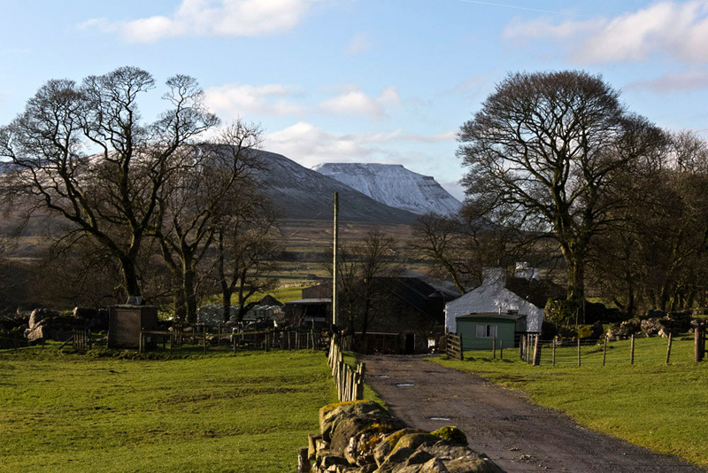 Ingleborough (2373ft, 723m) from the access to Low Gearstones Farm.