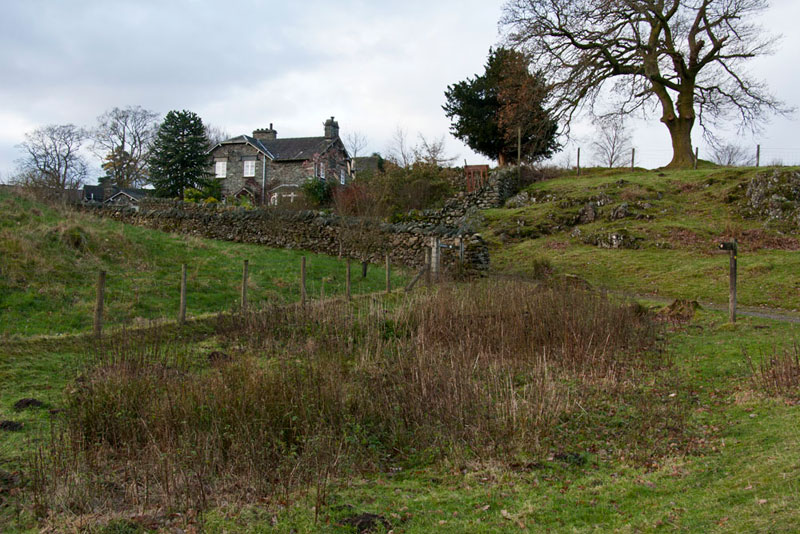 Finally this brought us again to the main Ambleside to Coniston road. A busy road, dangerous for pedestrians, so the kissing gate on the right giving access to a fenced path behind the wall was very welcome. This once again comes out onto the road at High Oxen Fell Cross.
