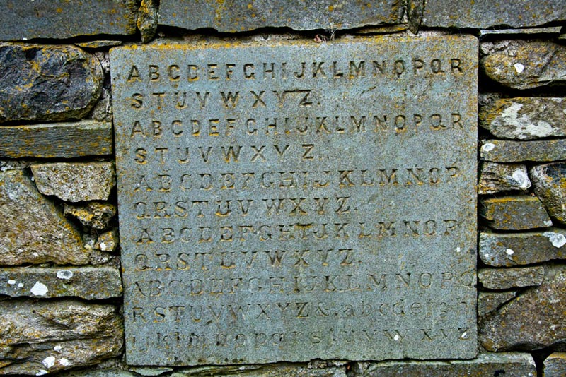 As we walked through the yard, Grizzly called out, "look, Southey, there is the apprentice stone set into the wall. The alphabet is carved in five different scripts, and local knowledge says it was a teaching aid for Stone Masons."