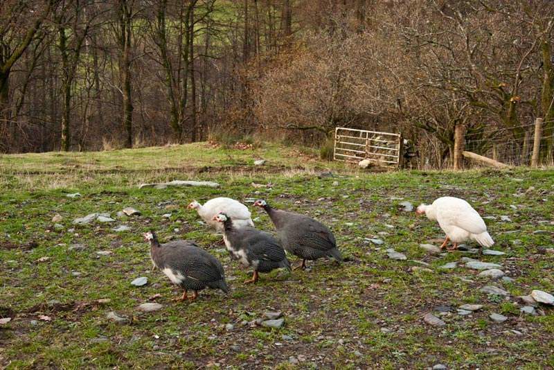 Beyond we crossed the drive and as directed by the waymarks the route led us through gap stiles to Park Farm, crossing the access track and through a metal kissing gate, into the large pasture beyond. Here some fowls were scratching about.