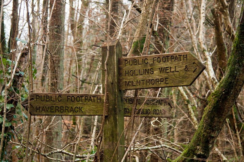 Here there was this three-armed signpost our route being in the direction of Hollins Well & Milnthorpe,