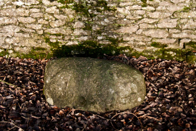 The path went beside the wall to the right, and here a number of boulders with a pinkish tinge were sticking out of the ground.