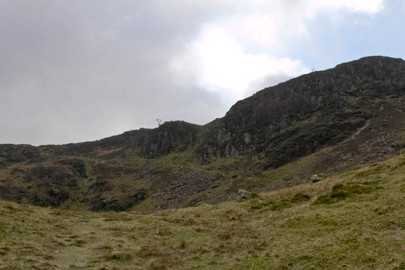 The clear path led on dropping steadily, and soon we were past Blea Crag, seen here looking back. A massive bulk buttressing the north-east side of High Spy.
