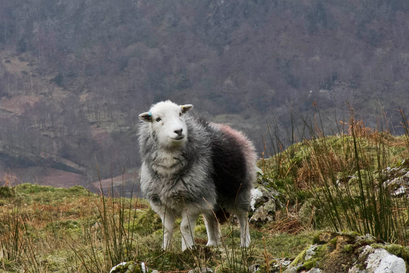 Just a few minutes later as we crossed towards the crags, Shaun called out, "there is one of our lovely Herdwicks, just waiting to have his picture taken."